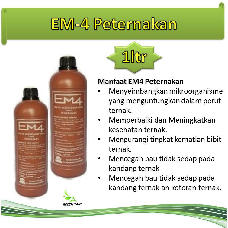 Produk em4 peternakan merupakan kultur em dalam medium cair berwarna coklat kekuning kuningan yang menguntungkan untuk pertumbuhan dan produksi ternak dengan cirri ciri berbau asam manis. Pakan menjadi suatu komponen yang sangat berpengaruh didalam usaha peternakan baik sapi ayam burung kambing. Padahal cara membuat em4 sendiri cukup mudah dan bisa dilakukan di rumah selain itu bahan yang digunakan juga sangat mudah dijumpai.