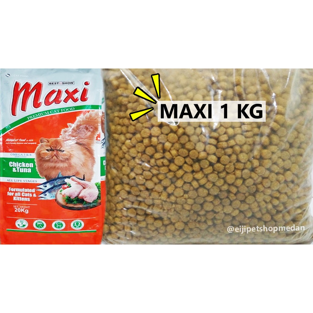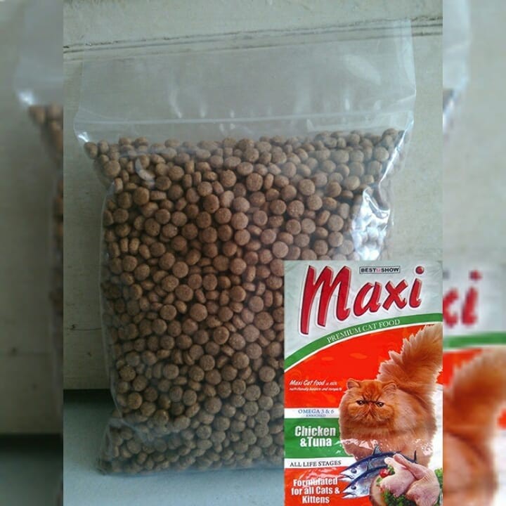 Pakan kucing maxi dapat ditemukan di toko online dengan harga yang murah. Pakan kucing maxi mengandung vitamin a d3 e c omega 6 omega 3 kalsium l lysine yang bermanfaat untuk merangsang nafsu makan serta meningkatkan kekebalan tubuh kucing dan mengandung ekstrak yucca schidigera yang bermanfaat untuk mengurangi bau tak sedap pada kencing dan juga kotorannya. Maxi bagus buat nambah nafsu makan. Harga perkilonya paling tidak 75 000 ribu.