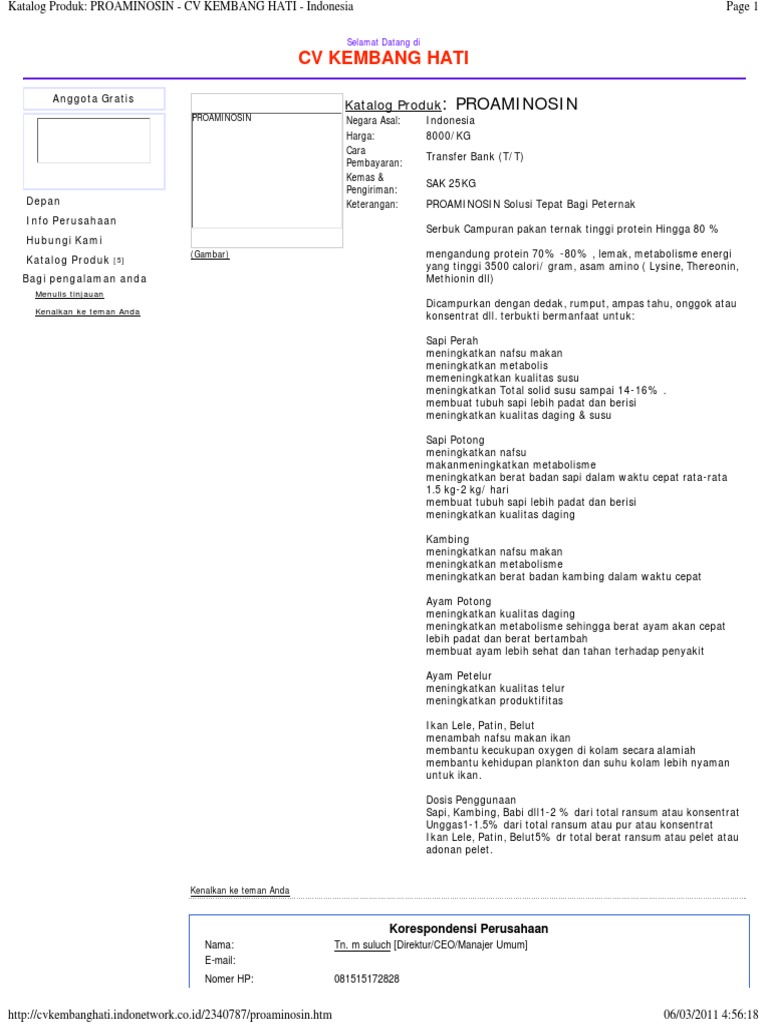 Proaminosin. Proaminosin solusi tepat bagi peternak. Proaminosin merupakan tepung sumber protein untuk segala jenis ternak dengan kandungan protein lebih dari 70 proaminosin mampu diandalkan untuk meningkatkan produktifitas dan menekan biaya pakan. Sudah saatnya para peternak indonesia harus lebih. Ternak mengkonsumsin proaminosin 125 ekor 2 45 dibawah umur 20 hari.