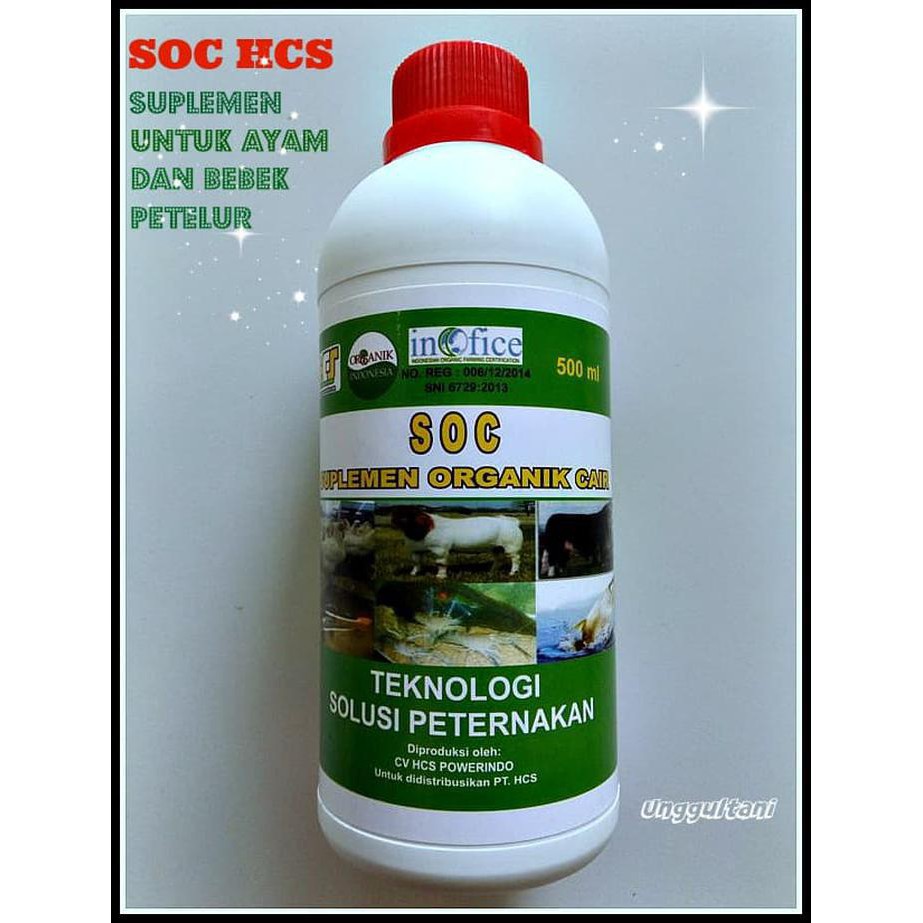 Dengan pemberian produk soc dapat membantu menyehatkan ternak. Selain produksi daging soc juga baik untuk perkembangbiakan hewan ternak. Soc dapat pula membuat fermentasi jerami gedebog dll sehingga pakan bisa bertahan lama untuk pakan hewan soc terbukti menghilangkan bau kotoran dengan pola hcs menggunakan soc kenaikan bobotkambing 2 0 kg mgg kandungan soc dan penggunaaan soc suplemen organik cair mutlak diperlukan untuk setiap langkah langkah aplikasi agar hasil bisa maksimal. Untuk hasil yang maksimal dalam pola soc hcs sebaik nya anda membuat pakan fermentasi bahan bahan yang harus di siapkan 40 tepung jagung 30 dedak halus atau bekatul 10 tepung ikan 10 tepung daun pepaya 10 tepung tulang suplement organik cair soc 5 sdm gula pasir.